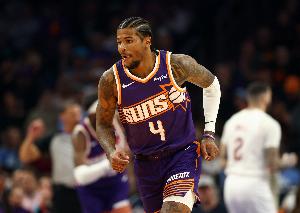 太阳主将杰伦·格林上半场承担了球队的主要进攻责任,他出战17分半钟,13投5中(三分7中2)、罚球7中6,砍下18分3篮板2助攻,正负值+13!