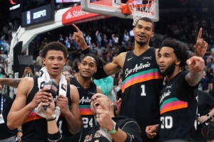 霍里表示:“他们有一个外星人文班亚马,别的队友都在他的阴影之下,但马刺大概有8个人场均得分上双,那说明了他们在打团队篮球。你看联盟那些强队,雷霆很出色因为他们打团队篮球,波士顿也是,其他球队就很少打团队篮球。