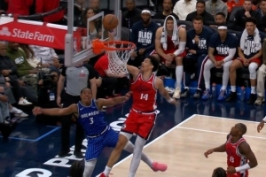 此役,尼德豪泽替补出战26分钟,投篮7中3,三分球2中1,拿到7分8篮板(3前场篮板)4盖帽的数据。