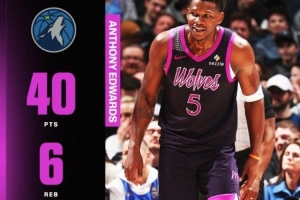 根据数据统计,这是爱德华兹生涯第27次砍下40+,他目前在森林狼队史40+排行榜上独一档,是第二名(唐斯,13次)的两倍还多。